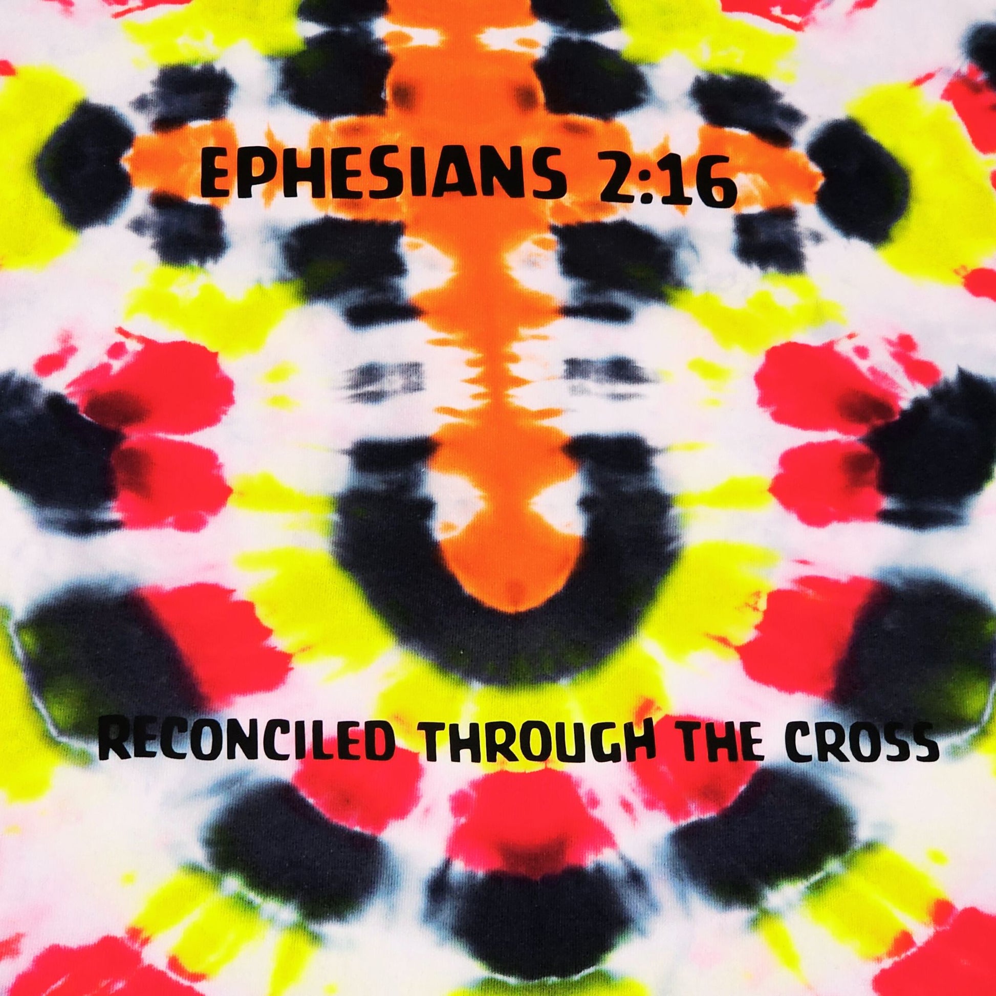 This is a one of a kind tie-dye cross t-shirt with a bible verse.